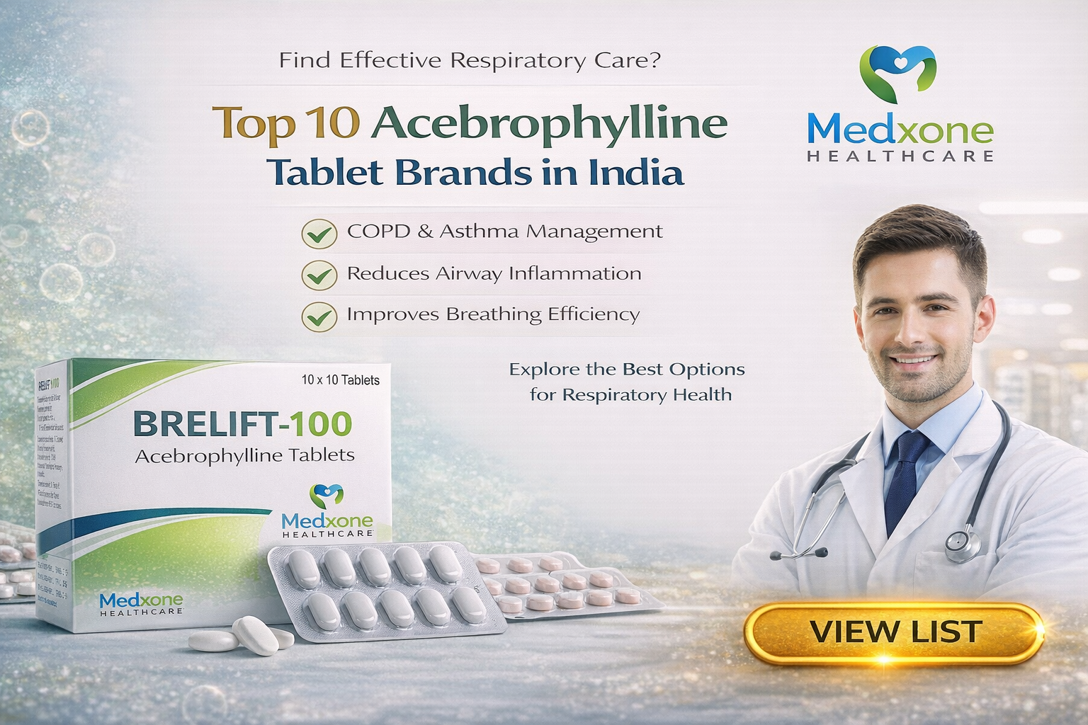 The leading name in the list of Top 10 Acebrophylline tablet brands in India , is the BRELIFT-100. The Medxone company produces BRELIFT-100 as their top Acebrophylline tablet product which competes with other brands in the Indian market. The formula of the product delivers effective treatment for respiratory diseases which include COPD and asthma and bronchitis. The tablet improves breathing efficiency through its mechanism which relaxes airway muscles and decreases mucus buildup. The product undergoes production in accordance with strict quality control measures which guarantee safety and consistent performance while delivering dependable outcomes that make it suitable for prolonged use in respiratory treatment.